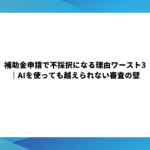 - 補助金申請で不採択になる理由ワースト3|AIを使っても越えられない審査の壁ChatGPTなどの生成AIを活用して、自力で補助金申請に挑戦する経営者が増えています。AIは文章を整え、知識… 続きを読む: 補助金申請で不採択になる理由ワースト3|AIを使っても越えられない審査の壁